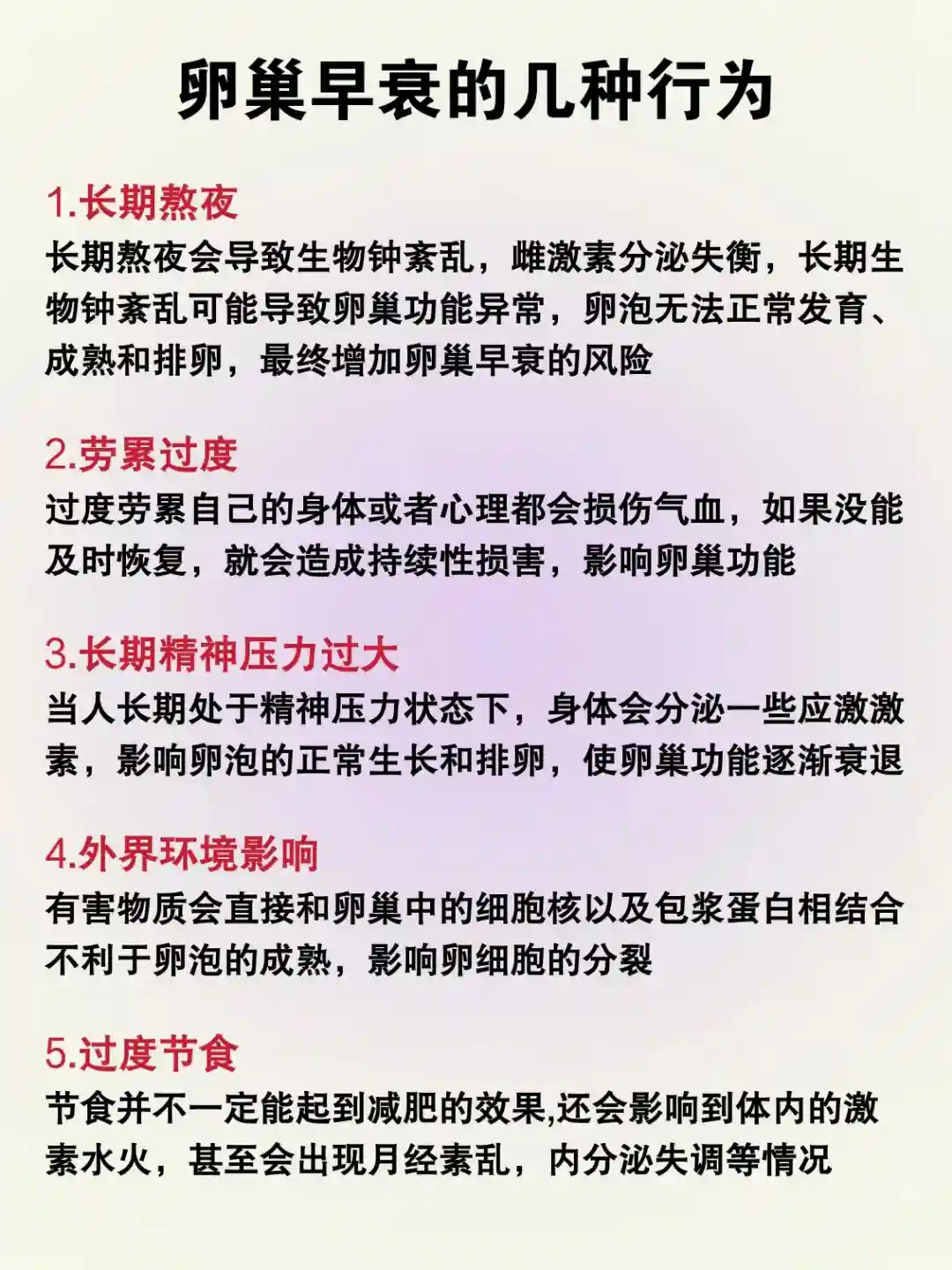 不少女性面临着卵巢功能下降的困扰,月经不调、月经量少等都是卵巢功能衰退的信号,还会引起皮肤松弛、皱纹增多、情绪波动、失眠盗汗等问题。考虑通过辅助生殖技术,如试管助孕,是改善生育状况的有效途径。您可以自查是否出现以下影响卵巢健康的行为,这些行为也可能影响到试管助孕的成功率: